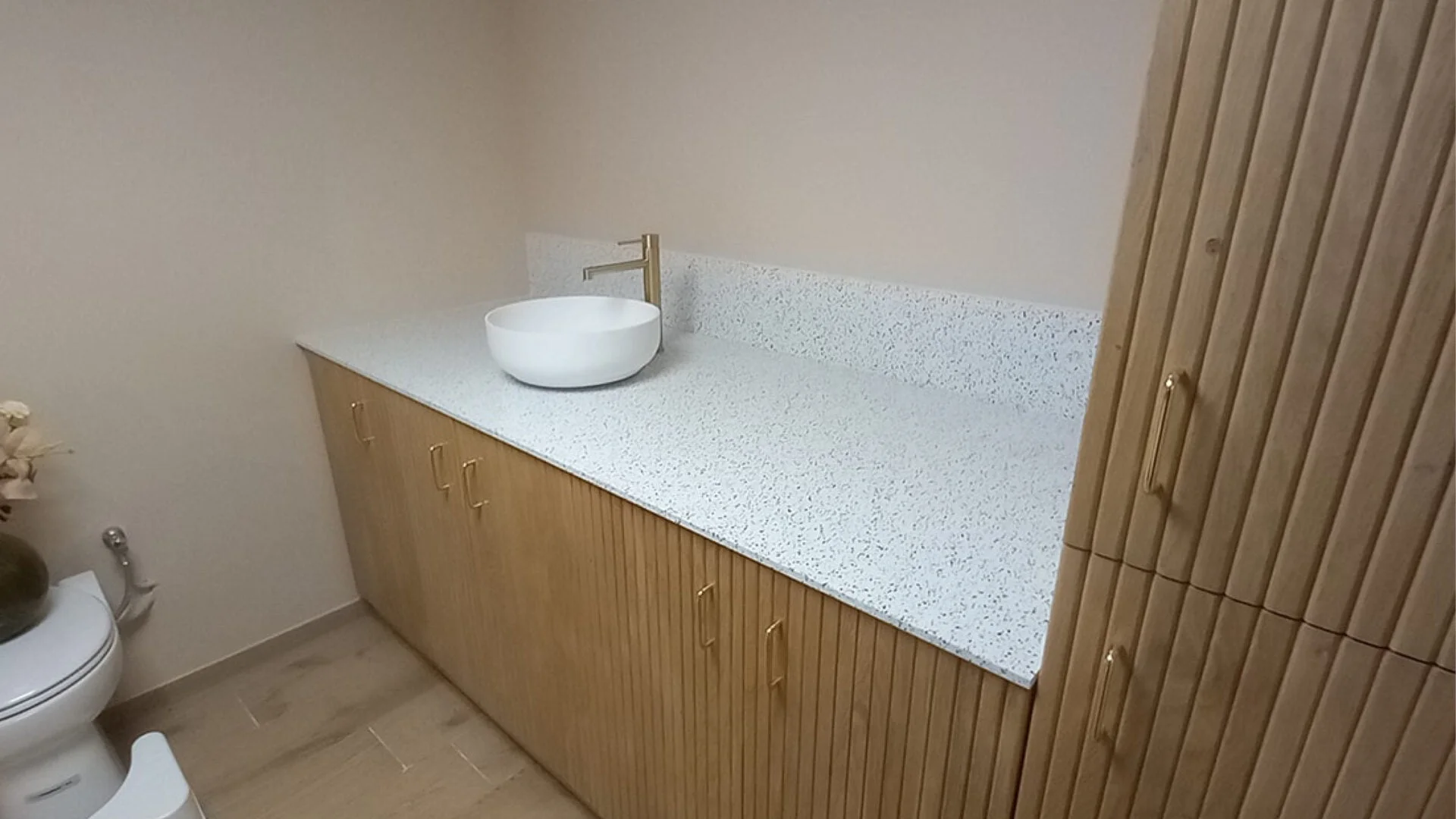 Kerrock sieht aus wie Stein, fühlt sich aber angenehm an und wirkt warm. Attraktive und ansprechende Oberflächenstruktur. Überzeugen Sie sich selbst, wie angenehm das Material bei Berührung ist.
