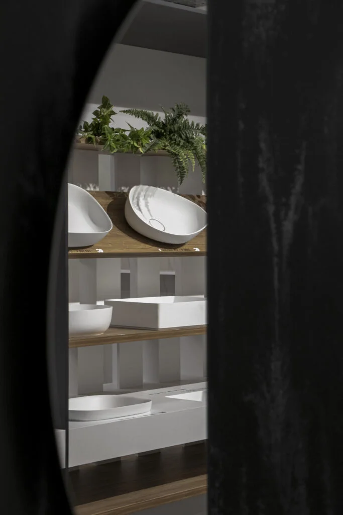 Minimalism of smooth, porous and homogeneous material. Creates an atmosphere and gives a distinct character to the look.