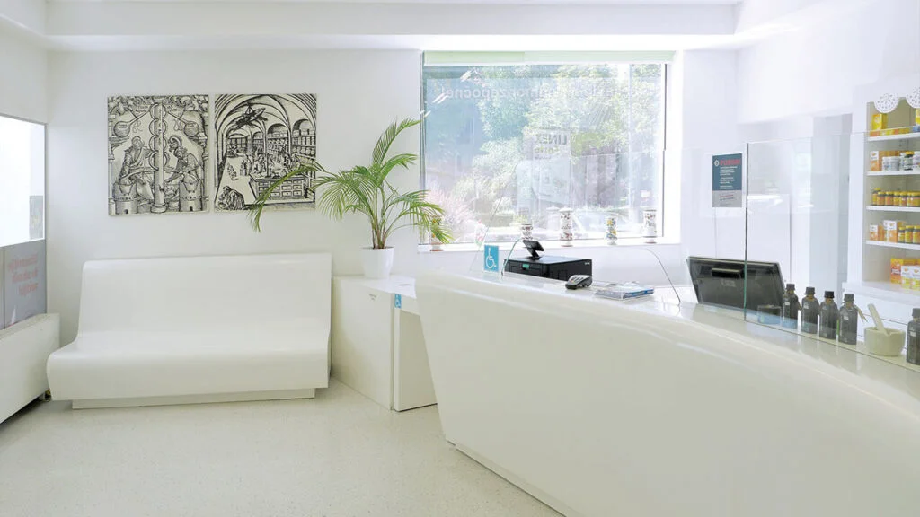 Kerrock ist ein Material, das die spezifischen Anforderungen von Medizin und Pharmazie voll und ganz erfüllt. Angenehm und warm in der Haptik, nicht porös und extrem leicht zu reinigen und zu pflegen.