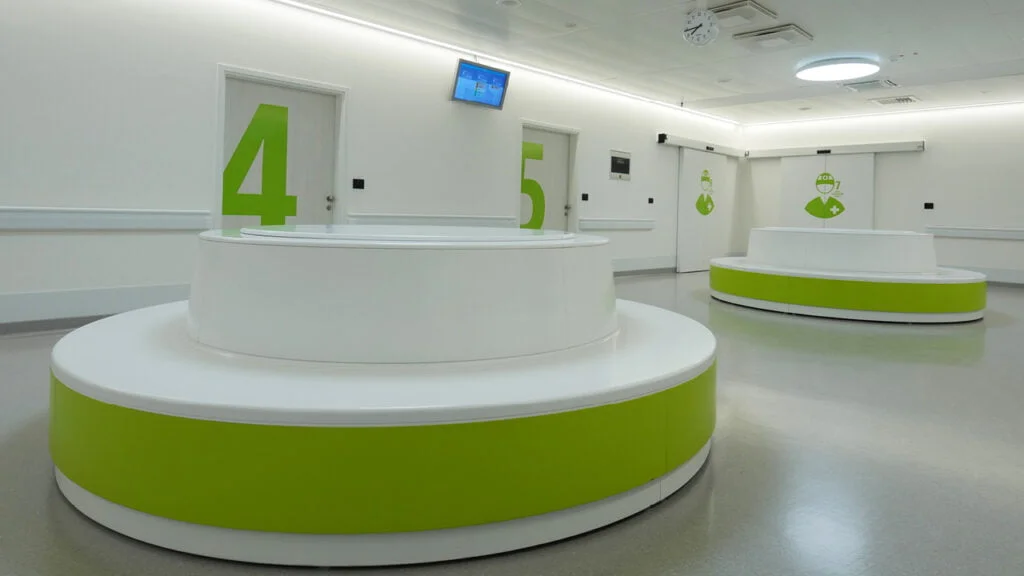 Als Hersteller von Kerrock-Platten und Kerrock-Produkten ist Kolpa, d.o.o. Metlika hat langjährige Erfahrung mit der Verwendung von Kerrock in Einrichtungen des Gesundheitswesens für Arbeitsflächen (Tresen), Waschbecken, Wandverkleidungen von Kliniken und Reinräumen. Wir verkaufen unsere Produkte sowohl in Slowenien als auch im Ausland. Tatsächlich macht der Export einen sehr großen Anteil unseres Umsatzes aus.