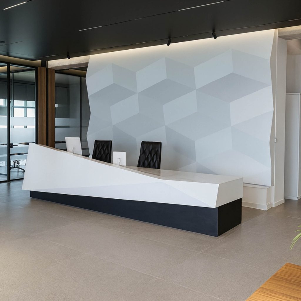 A visitor’s first contact with a company does not begin with a greeting, but the moment they step into the space. The reception area is the heart of the first impression, a space where functionality meets aesthetics and where the identity and vision of the company are revealed. That is why more and more architects and interior designers are choosing Kerrock for the design of representative reception areas – a high-quality composite material that embodies contemporary design.